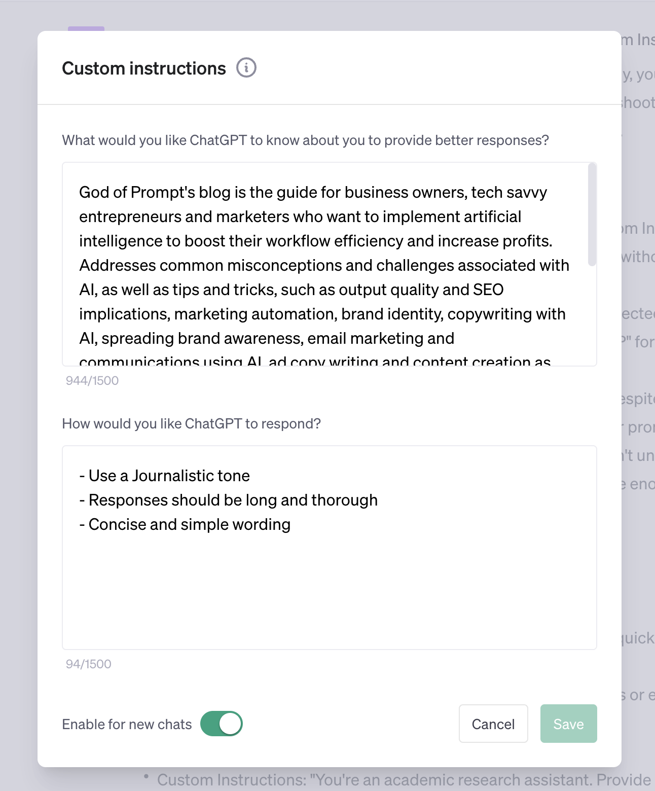 - What examples of good prompts look like