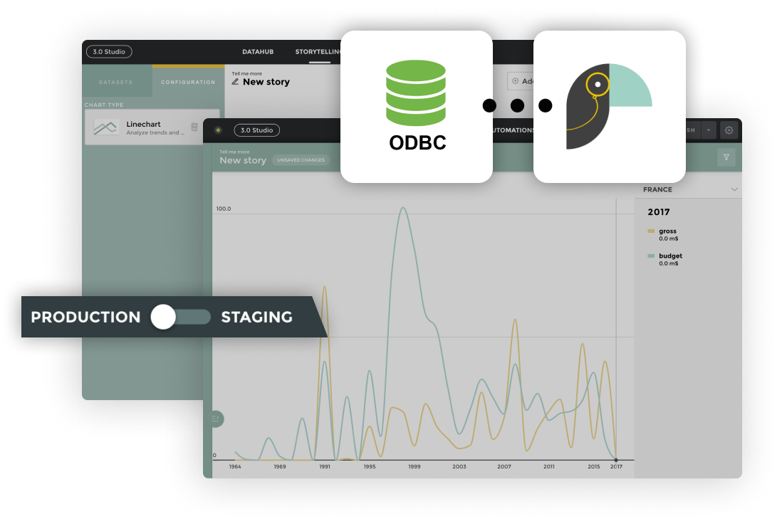 L'interface ODBC (Microsoft Open Database Connectivity) est une interface en langage de programmation C qui permet aux applications d'accéder aux données de divers systèmes de gestion de bases de données. Avec Toucan, vous pouvez réduire considérablement le temps nécessaire pour obtenir des informations exploitables à partir de cette source de données.