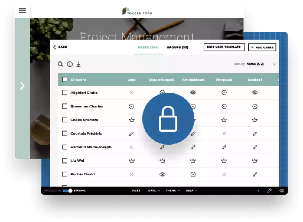 La solution de gestion des utilisateurs de Toucan allie puissance et simplicité pour vous permettre d’attribuer facilement les bonnes autorisations aux bons utilisateurs, sans difficulté.