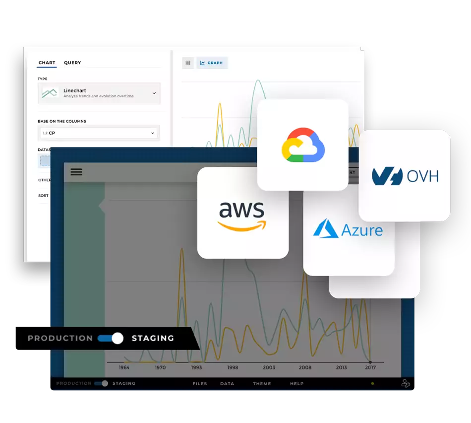 Toucan vous aide à utiliser le cloud analytics avec n'importe quel Cloud. Données dynamiques ou statiques et quelle que soit la base : retrouvez-les rapidement dans Toucan.
